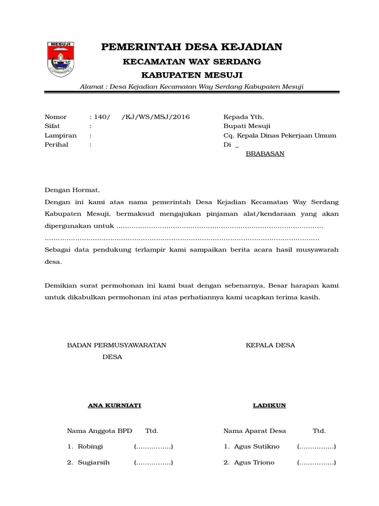 Ruko edelwis permai blok ab3 no. Inilah contoh surat peminjaman tempat dan alat. Doc surat perjanjian pinjam pakai fasilitas kantor download doc surat perjanjian pinjam pakai fasilitas kantor download format surat lain: Peraturan direktur jenderal perikanan budidaya nomor 38 per. Tetapi kalau yang memohon izin adalah tetangga ke sesama tetangga saya rasa tidak perlu menggunakan surat menyurat.